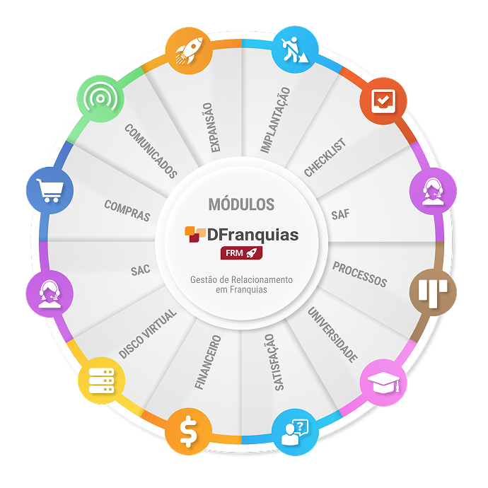 Com mais de 10 módulos que cobrem todas as etapas da operação. Entre os recursos disponíveis estão gestão financeira, SAC, controle de expansão, acompanhamento de implantação de unidades, checklists operacionais, central de compras, disco virtual para armazenamento de documentos e ferramentas de comunicação interna. Franqueados, fornecedores e leads acessam a plataforma de forma segmentada, conforme suas necessidades.